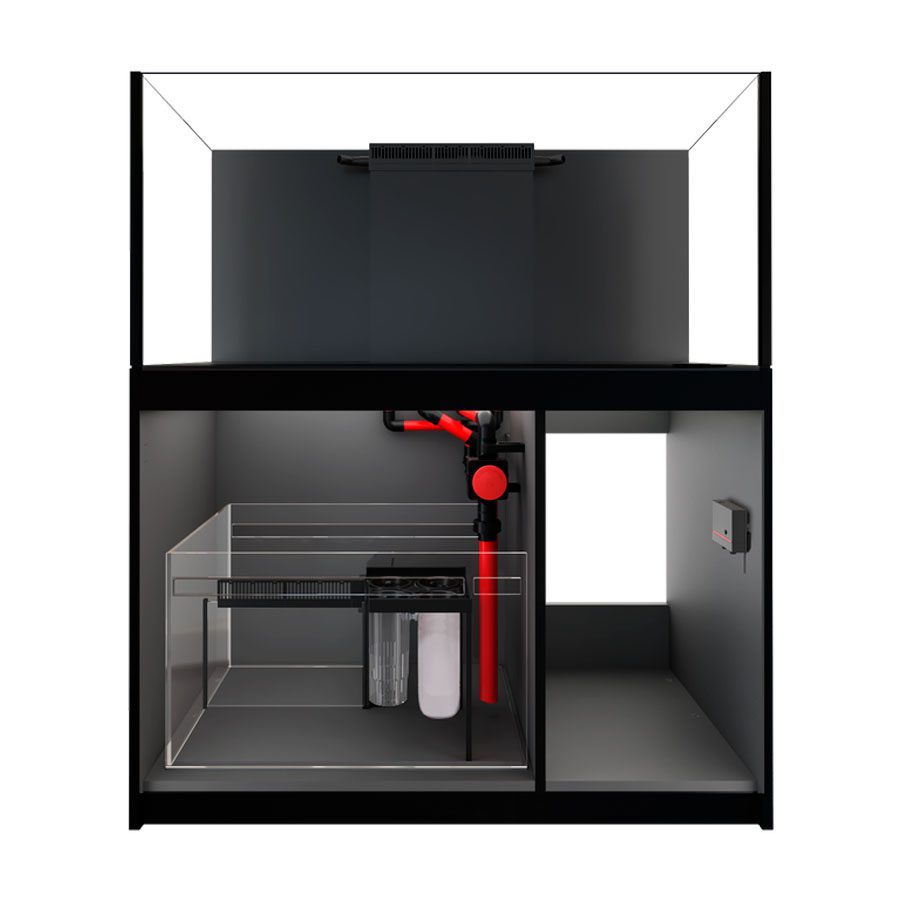 En la parte superior, los acuarios Reefer G2+ utilizan una gran caja de desbordamiento con bombas de retorno duales orientadas hacia los lados para una circulación de agua óptima y una mayor limpieza de la superficie.