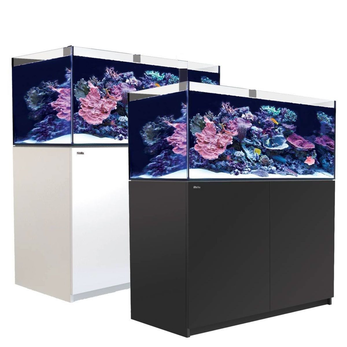 La serie Red Sea Reefer G2 no tienen refuerzos y están construidos con vidrio ultra transparente de borde biselado con un mayor grosor hasta 19 milímetros. Los acuarios descansan sobre mesas recientemente fortificadas hechas de madera contrachapada y con una laminación resistente al agua salada.